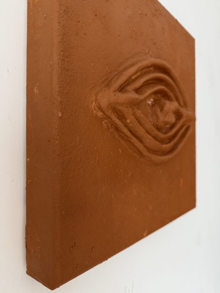 Her earlier series, “Observed by the Earth” draws inspiration from Anatolian myths and the concept of the Earth as a silent observer. These works incorporate materials like sea salt and ink alongside acrylics to evoke a connection to nature and heritage.